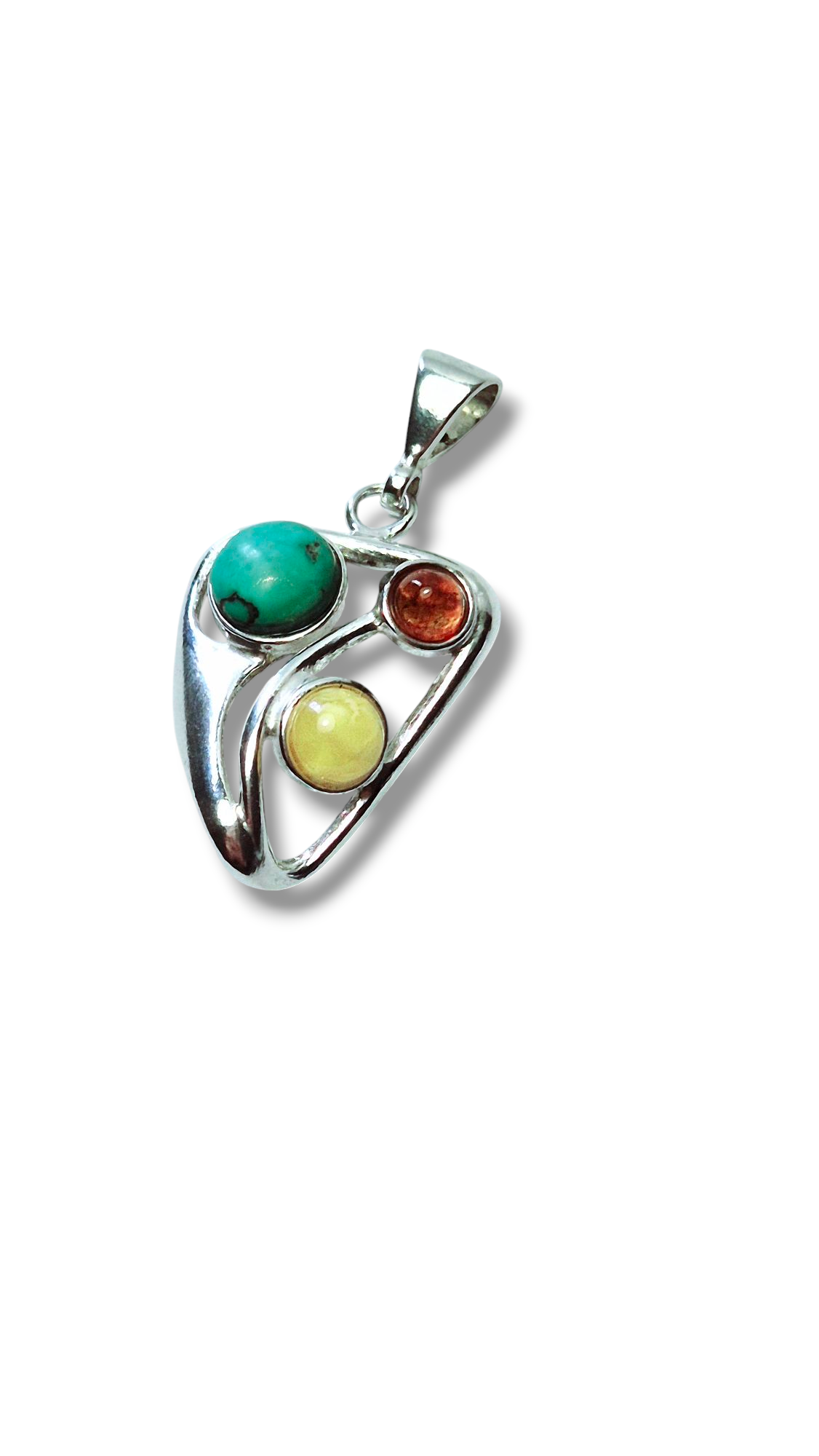 Trinity Harmony – Silver Pendant with Turquoise & Amber
